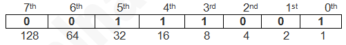 चूंकि हमें हमारे Required मान की Binary Bit-Pattern प्राप्त हो चुकी है, इसलिए जिन भी Bits की Position Blank है, उनमें 0 Fill कर देने से हमें हमारे Required मान की Actual Bit-Pattern प्राप्त हो जाता है, जो कि निम्नानुसार हैः