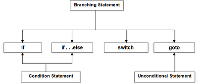 प्रोग्राम में कई जगह पर किसी Condition के आधार पर Control के सामान्य प्रवाह को छोड कर किसी भिन्न Point से Statement का Execution करना पडता है। इस प्रकार के चयनात्मक Execution के लिये प्रयुक्त Statements को Conditional Statements या Branching Statements कहा जाता है।