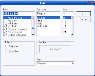 Font Property वास्तव में एक Object होता है, जिसमें इसकी स्वयं की Properties होती हैं। हम Font Object की Properties को Design Time में एक Dialog Box द्वारा Manipulate कर सकते हैं। इस Object को Call करने के दो तरीके होते हैं। पहले तरीके में हम Control की Font Property को Double Click करते हैं और दूसरे तरीके में हम Font Property के साथ में Associated Ellipsis Button ( … ) को Click करते हैं। दोनों ही स्थितियों में हमें एक Font Dialog Box दिखाई देता है।