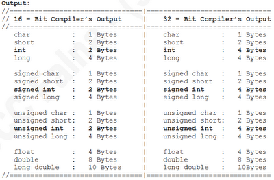 printf("unsigned int:%d Bytesn",sizeof(unsigned int));